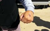 “I think what has happened is my hand was on the side of the board here when it hit me and that is where I got a tooth mark.