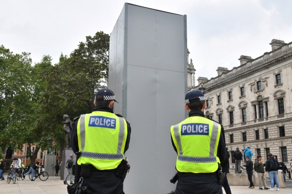 Meanwhile, two women, aged 27 and 28, were arrested on a street near Hyde Park and were allegedly found with a bag containing spray cans after the statue was vandalised on Saturday night.