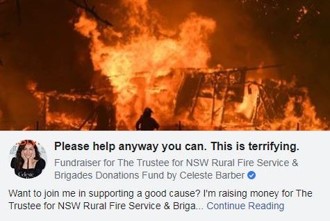 Barber began the Facebook appeal in January with an initial aim of $30,000, but the campaign exceeded all expectations as the fires raged.