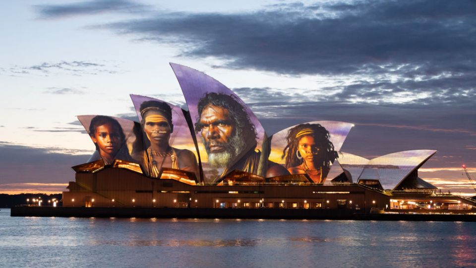 Portraits of four key historical Gadigal people of the Eora nation, including female leader Barangaroo and cultural mentor Patyegarang, were projected onto the Sydney Opera House sails as the sun rose on Friday.