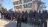 About 50 people wore black from head to toe and masked their faces as they stood in rows near the town’s war memorial.