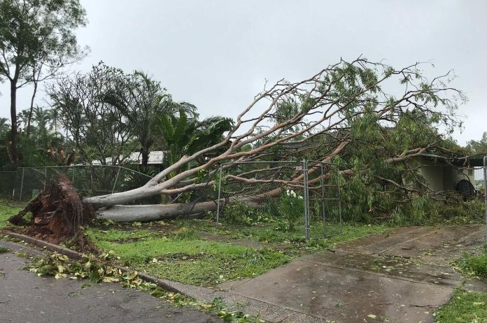 More than 500 reports have been received of trees on power lines and fallen power lines, and hundreds of large trees have been strewn across roads, blocking access to many of Darwin’s streets.
