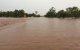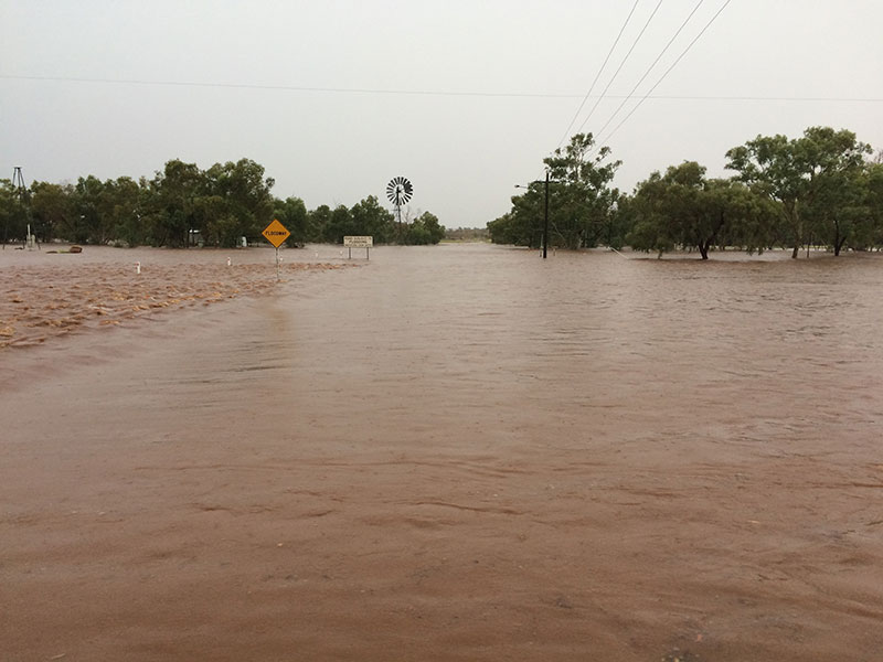 “There’s water over the road here and there, and a lot of the creeks and the swamps are full up and the Georgina (River) has come up from 2.4m to 3m in an hour.”