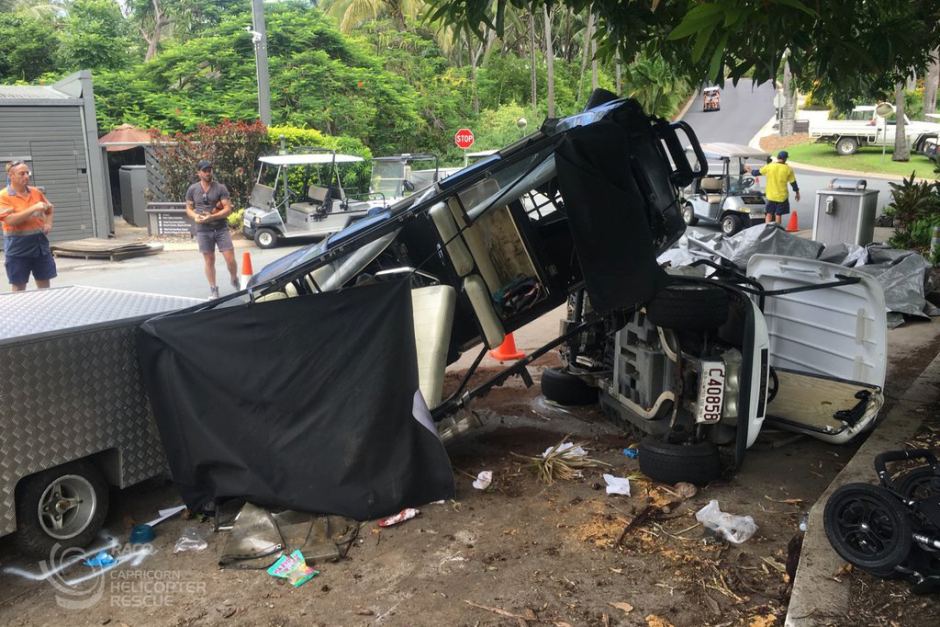A six-seater and a four-seater buggy collided about 8:30am on the Whitsunday island, where buggies are the main form of transport on the sealed roads.