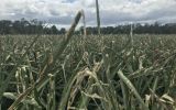 “You just couldn’t afford the premiums that it would cost to insure the crop so you’ve just got to basically crop it, it’s damaged all the cells of the leaves. They’ve just been stripped basically, like someone’s gone through there with a whipper snipper. You can see they’re just white from the damage from the hail.”