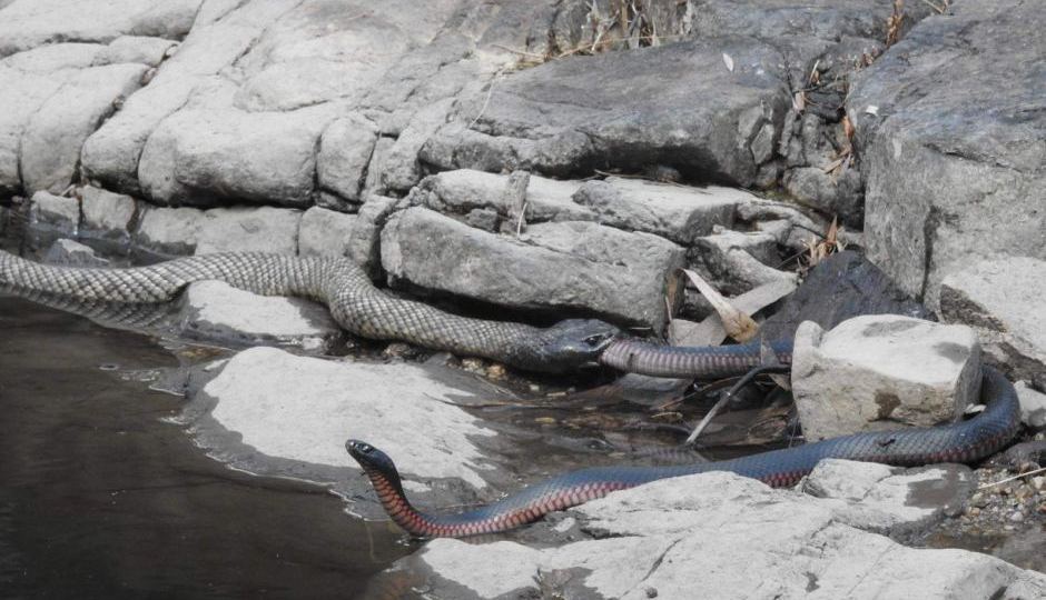 Professor Fry said the spotted black snake probably followed the scent of the red-bellied black snake until it found it.