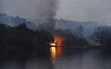The Country Fire Service downgraded its emergency warning to a watch-and-act message on Sunday, and said the blaze did not expand significantly on Monday, but continued to burn out of control.