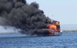 The coastguard received a distress call about lunchtime that a yacht was on fire and the Metropolitan Fire Service (MFS) sent its patrol boat Gallantry to tackle the blaze.