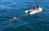 Police wielding breathalysers on the open seas may be an unwelcome surprise for some, but one way to get out of blowing into the tube is to catch the attention of a great white shark.