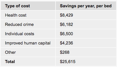 Getting people off the streets was calculated to have the following economic benefits per person: