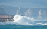 Emergency crews are searching for two rescuers west of the Twelve Apostles, off the coast of Port Campbell. Police say the pair were thrown into the water when their boat got swamped as part of a rescue operation for a swimmer in difficulty. pic.twitter.com/6d5q5tyc0g