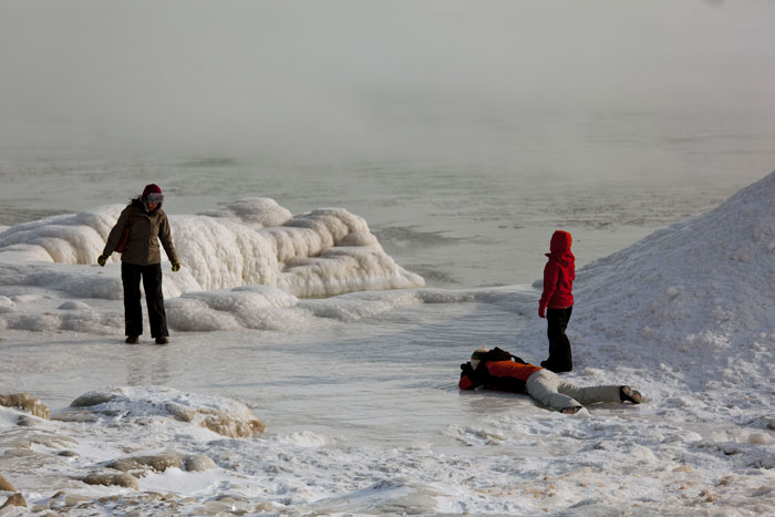 MILWAUKEE, WI: A family braves the cold to take photographs along the icy shore of Lake Michigan.