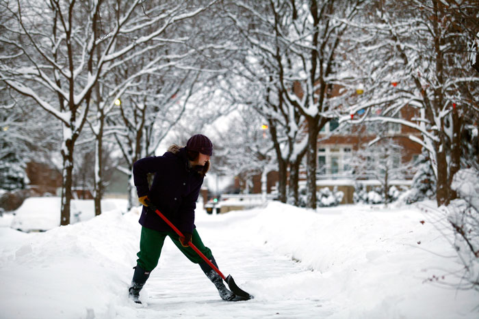 DETROIT, MI: A woman shovels snow from her sidewalk.