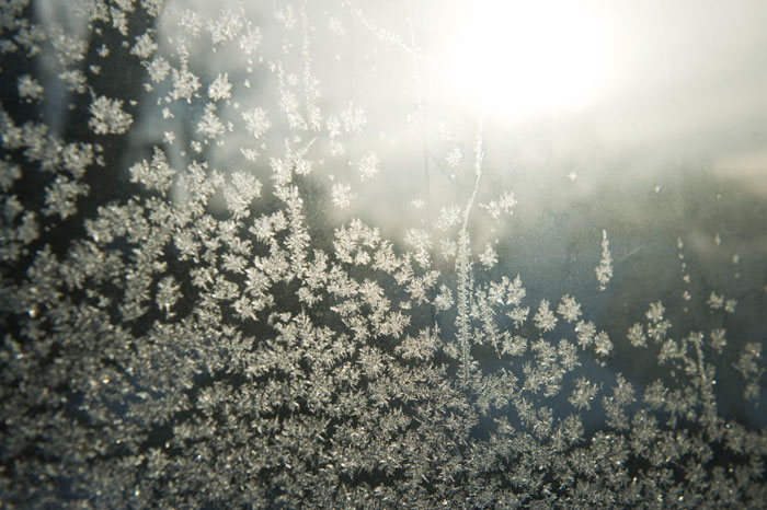 MINNEAPOLIS, MN: Ice crystals form on the inside of a window.