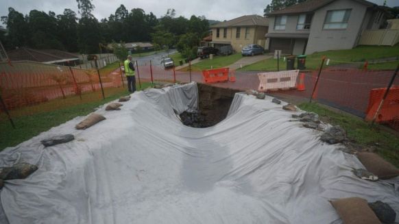 A giant sinkhole opened up on a suburban street in Coffs Harbour on Tuesday after a pipe under a path apparently collapsed from the weight of the sodden soil.