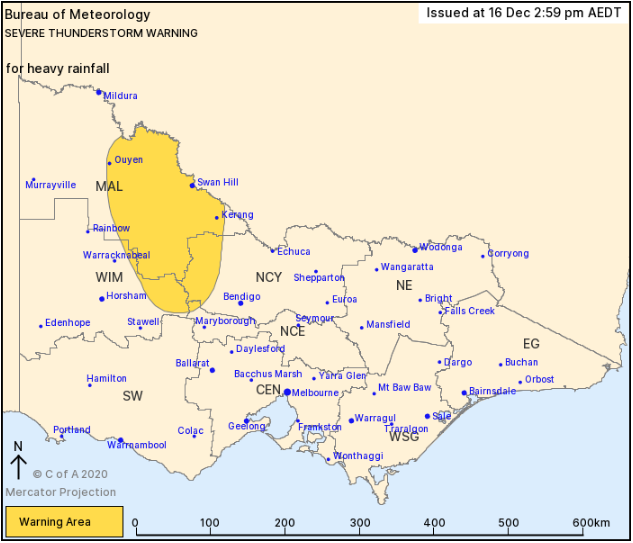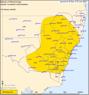 The warning zone stretches for almost the entire state _ from Mungindi near the Queensland border to Albury at the Victorian border. It covers all of the ACT.