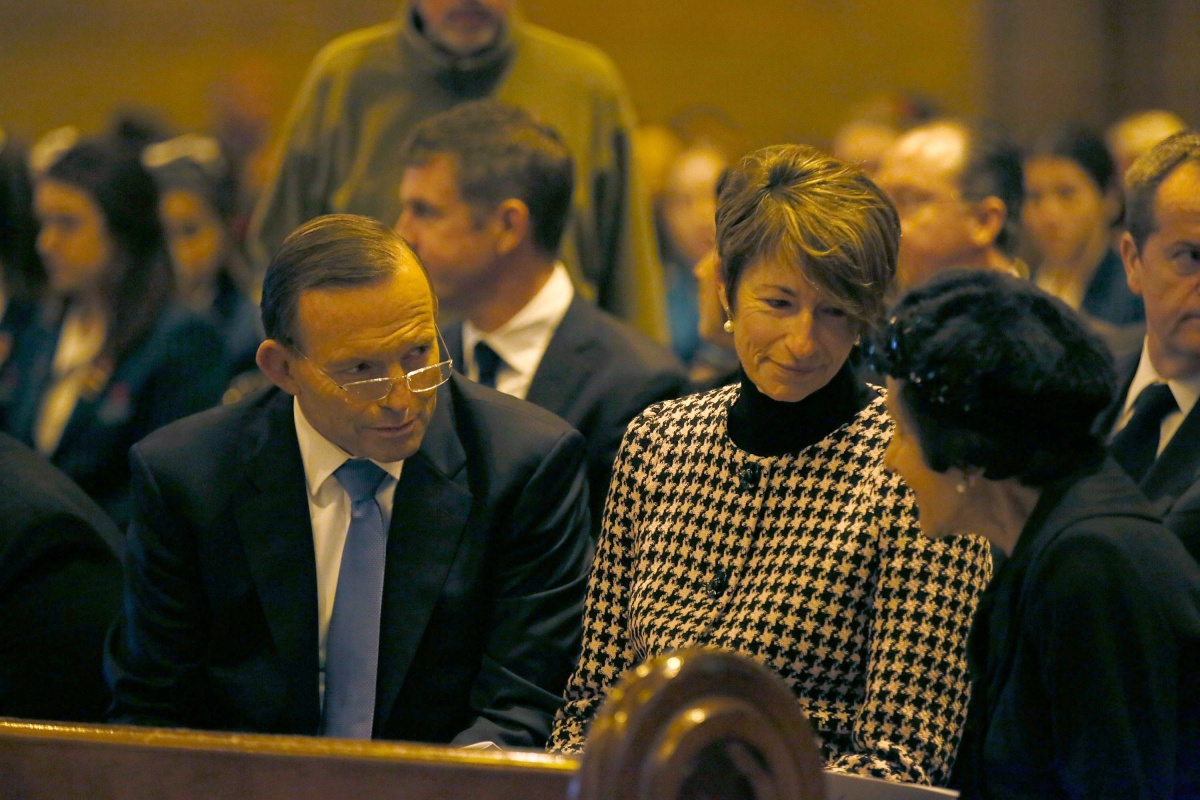 Australian PM Tony Abbott and wife Margie with NSW Governor Dr Marie Bashir during the memorial service for the victims of flight MH17 at St. Mary's Cathedral.