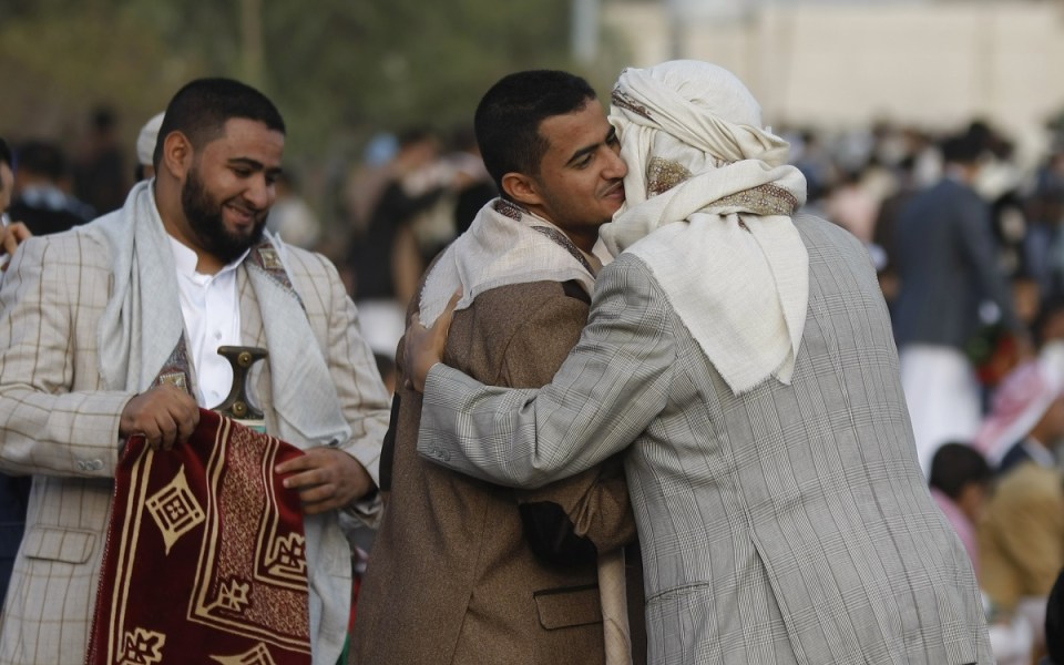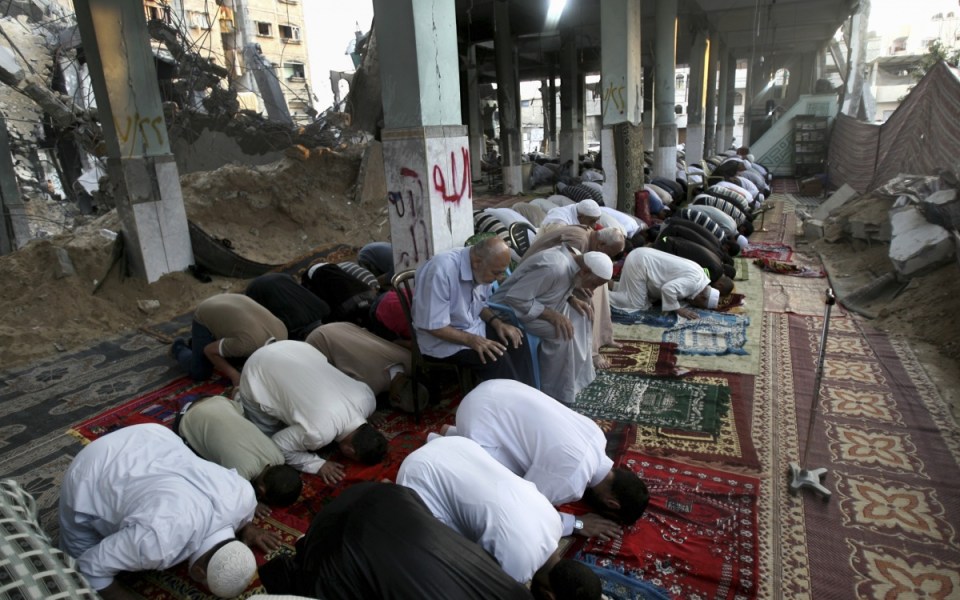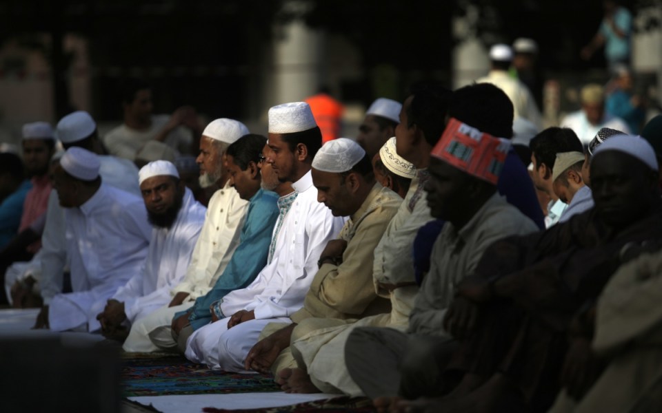 News World Eid al-Fitr: End of Ramadan around the world in pictures 11:09am, Jul 29, 2014 Updated: 12:15am, Jul 30 Eid al-Fitr: End of Ramadan around the world in pictures Ebony Bowden Journalist @ebonybowden Share Twitter Facebook Reddit Pinterest Email Iraqi girls celebrate the end of Ramadan. An Indian muslim girl has her hands decorated with henna ahead of Eid al-Fitr, which marks the end of Ramadan, in Mumbai. Indian muslims shop in the old city section of Hyderabad. Somalian children celebrate Eid al-Fitr with a trip to Lido beach in Mogadishu. Crowds at a mosque in the Sydney suburb of Lakemba spill into the street. Women buy bangles in a market in Islamabad, Pakistan, ahead of Eid al-Fitr celebrations. Palestinian muslims pray on the first day of Eid al-Fitr, in a mosque destroyed by an Israeli missile strike overnight. Muslim women pray on Parangkusumo beach in Yogyakarta, Indonesia, to mark the last day of Ramadan. Men exchange greetings at the end of prayer in Sanaa, Yemen. Palestinian muslims pray at a UN school in Gaza on the last day of Ramadan. Muslim women leave a mosque after Eid al-Fitr prayers in Lakemba, Sydney. Russian muslims pray outside a mosque in Moscow during Eid al-Fitr. A child joins Chinese Muslims praying during the evening prayer inside the Huxi mosque in Shanghai. Muslim men gather to pray in Martim Moniz square in Lisbon, Portugal. Traditional sweets prepared for Eid al-FItr on display in a bakery in Rotterdam, The Netherlands. An Afghan soldier stands guard during Eid al-Fitr prayers in Kandahar, Afghanistan. Bangladeshis pack a train to travel home to their families for the end of Ramadan. Afghan men celebrate after Eid al-Fitr prayers in Harat, Afghanistan. Muslim Australians celebrate Eid al-Fitr with family and friends in the Sydney suburb of Lakemba.