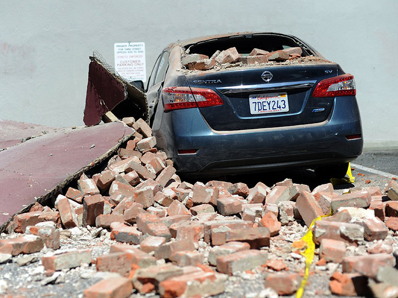 The quake sent at least a top corner of a brick building tumbling into the street in Napa. Elsewhere it ignited fires, burst water mains and cracked roads in the area.