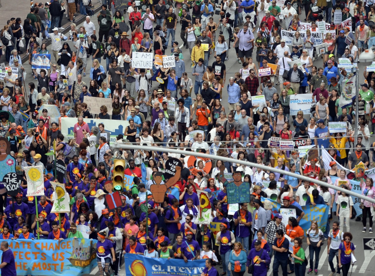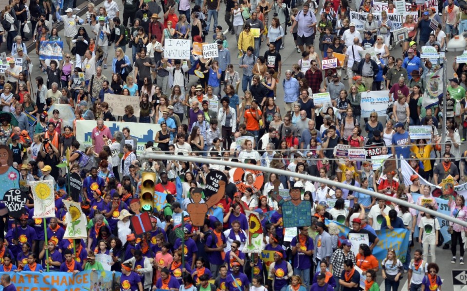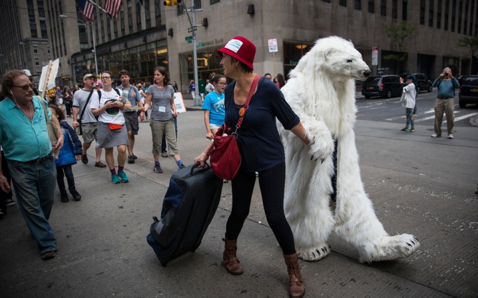 News World Thousands march in global climate rallies 8:24am, Sep 22, 2014 Updated: 3:13pm, Oct 1 Thousands march in global climate rallies Getty Ebony Bowden Journalist @ebonybowden Share Twitter Facebook Reddit Pinterest Email Leonardo DiCaprio and other celebrities joined the march. Estimates put the attendance at the rally between 300,000 and 600,000. The People's Climate March was one of hundreds of international climate change demonstrations. A woman walks with a person in a polar bear costume in a protest over climate change. Climate activist and former American Vice President Al Gore at the rally. Many streets in New York were in lockdown as people marched over action on climate change. Actor and producer Mark Ruffalo at the march in New York. United Nations Secretary General Ban Ki-moon at the march ahead of the United Nations Climate Summit. The People's Climate March comes ahead of the United Nation's Climate Summit in New York this week. Protestors went to an extraordinary amount of effort as part of the People's Climate March. Singer and activist Sting joins the rally. Students, children, politicians, professionals all joined the rally. Demonstrators have called for greater political action on climate change in what is being labelled the biggest climate change rally in history. Topics: Climate Change