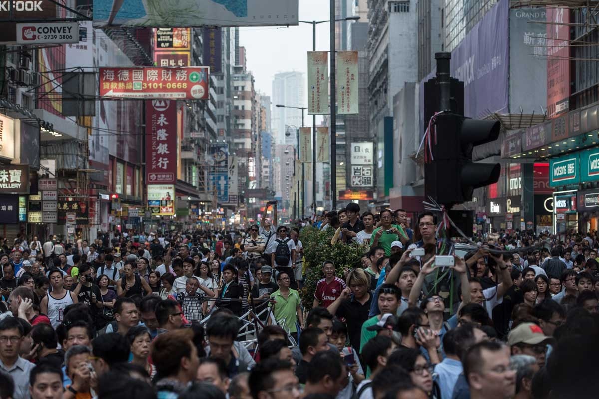 Two of the city’s busiest shopping districts descended into chaos on Friday as groups targeted protesters who have brought parts of Hong Kong to a standstill for the past week.