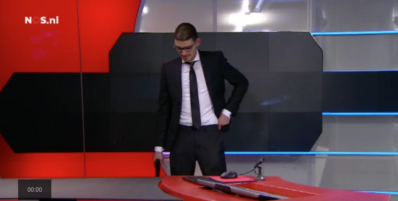 NOS has released video of the man in the broadcaster’s studio, which shows him dressed in a suit and holding a gun.