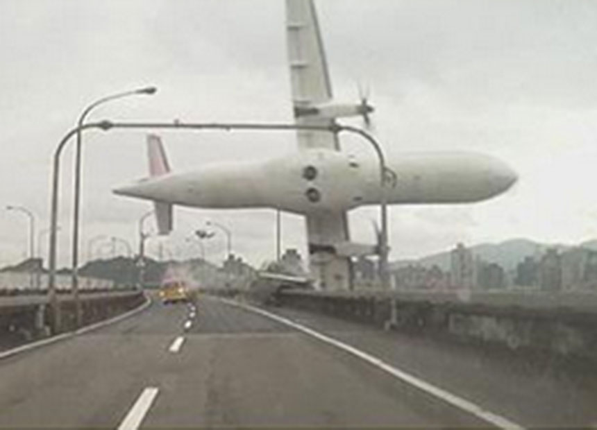 Before falling into the river, the plane avoided the tall buildings of Taipei’s Nangang district but its wing hit a bridge and a taxi on the bridge at the time, an online video showed.