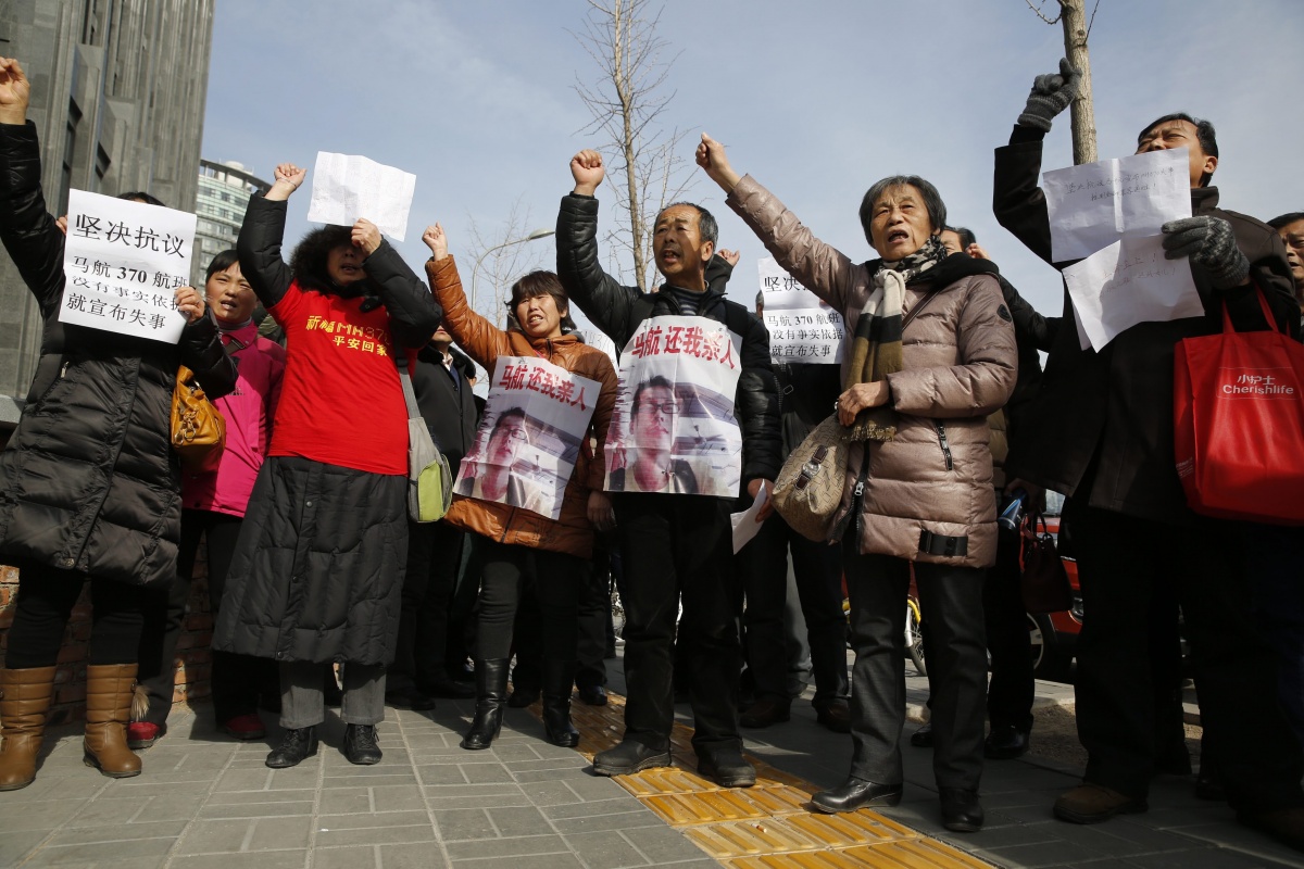 They held placards in English reading: ‘Who can tell us what happened’, ‘Come back MH370’ and ‘Today it is us, Tomorrow it could be you’.