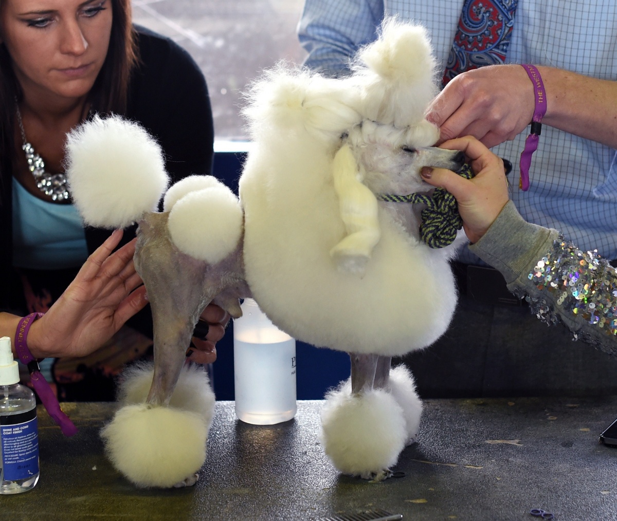 Peyton, whose full name is Tashtins Lookin for Trouble, then took care of the nation’s top two ranked dogs, Matisse the Portuguese water dog and Swagger the Old English sheepdog.