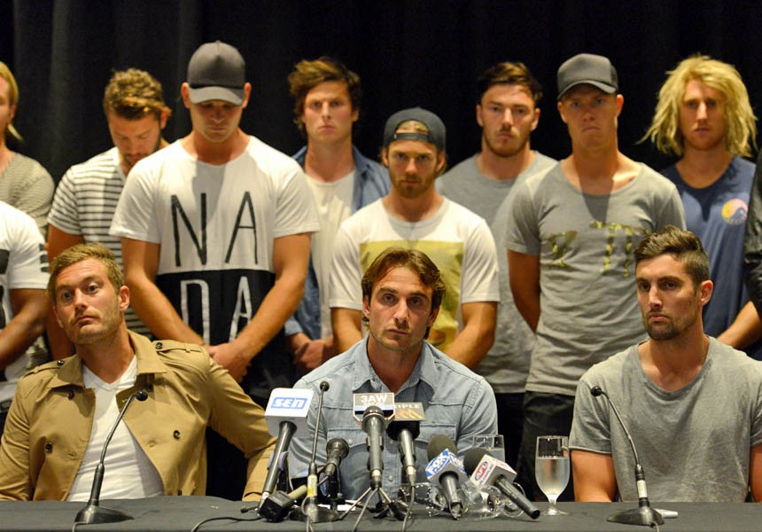 Essendon players front the media after being found not guilty of doping by the AFL.