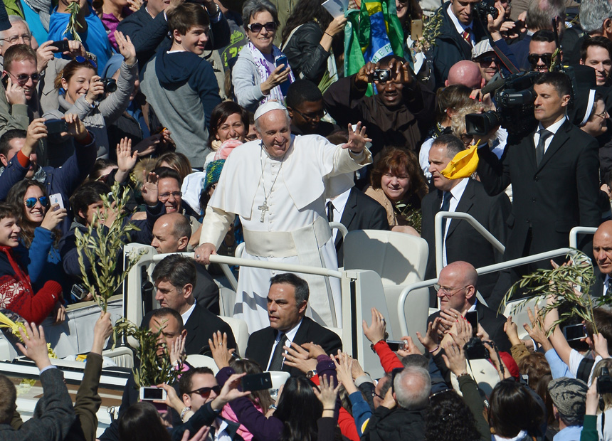 Pope Francis receives a rock star welcome during Palm Sunday ceremonies at the Vatican.