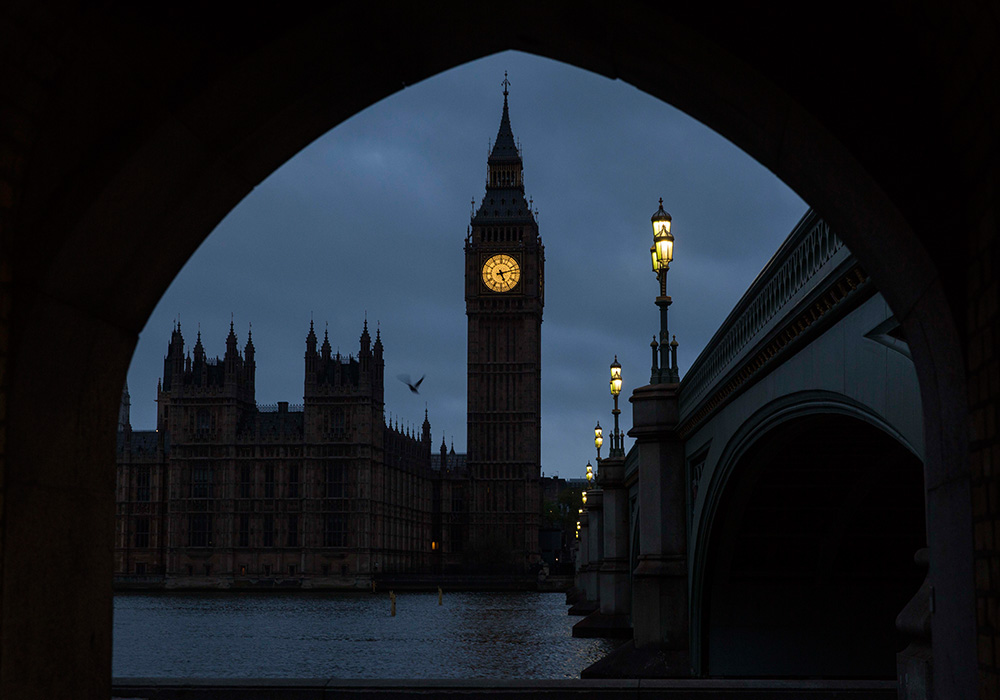 Big Ben illuminates London on the morning of the 2015 General Election.