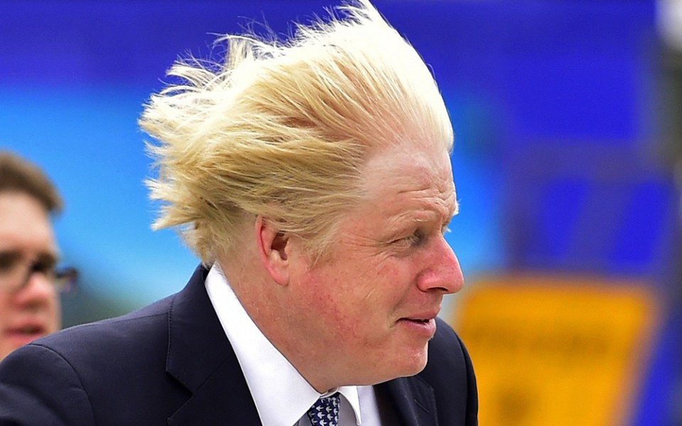 Watch the hair! London mayor Boris Johnson as he arrived to speak at an election rally before the 2015 General Election.