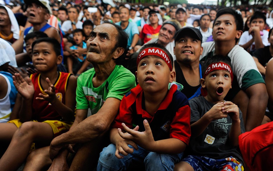 Filipinos watch the Mayweather vs Pacquiao fight in Marikina City, Philippines.