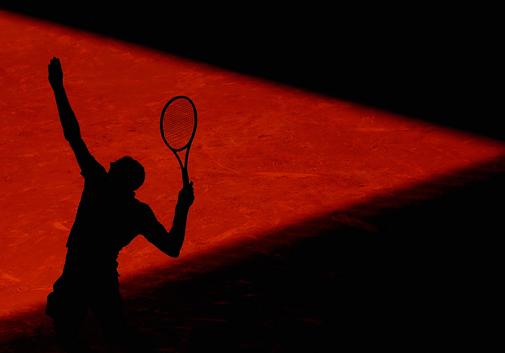 Grigor Dimitrov of Bulgaria serving to Fabio Fognini of Italy during the Mutua Madrid Open tennis tournament at the Caja Magica, Spain.