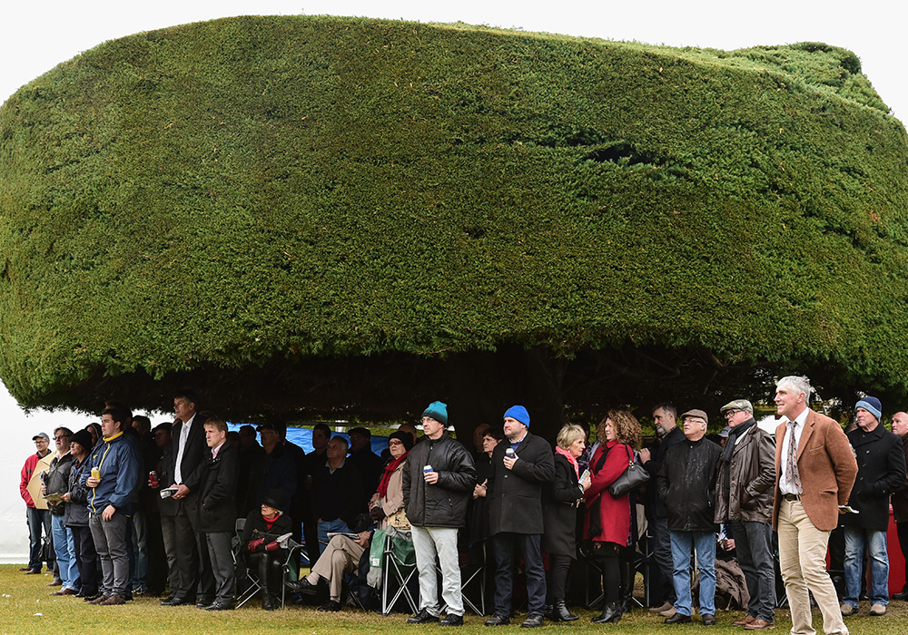 Crowds sheltered from the weather at the Grand Annual Day at Warrnambool Racing Club, Victoria.