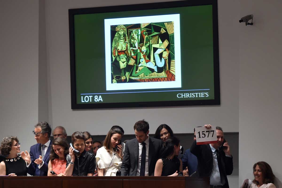 The Pablo Picasso oil painting, The Women of Algiers (Version 0), sold for $US179 million after 11 and a half minutes of furious bidding from telephone buyers at a packed auction room at Christie’s.