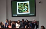 Applause erupted when the sale was finalised in an atmosphere of feverish excitement, accompanied by laughter and jokes, fetching way over its pre-sale estimate of $US140 million.