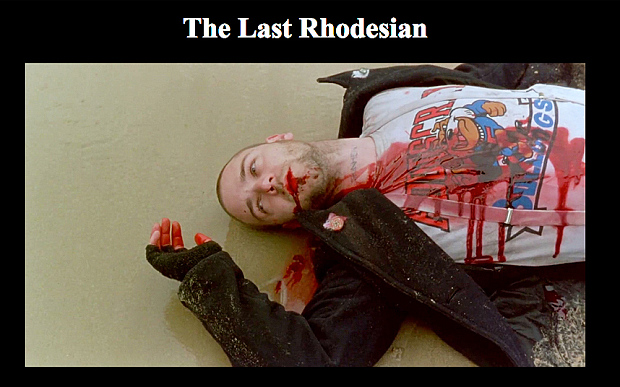 The site’s homepage also features an picture of actor Russell Crowe, covered in blood, from the 1992 Australian film Romper Stomper.