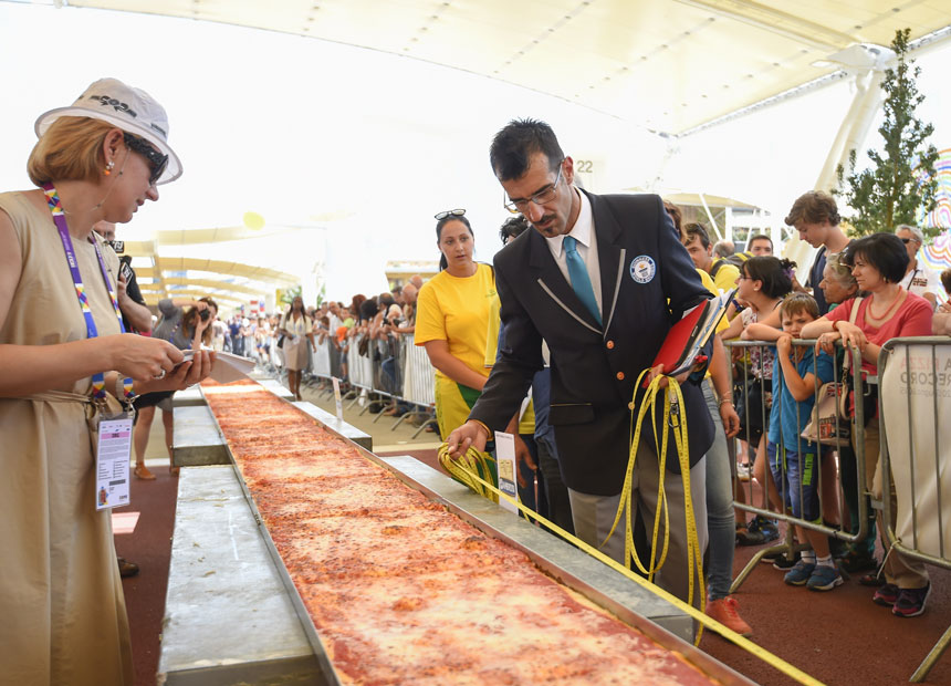 It was first come first served for the 30,000 or so visitors to the Expo, with 300 metres of the pizza destined for the city’s Banco Alimentare food bank.