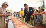 The Italian delicacy, which took three minutes to cook per metre and was prepared in five special-adapted ovens, was made to celebrate the 126th anniversary of the margherita.