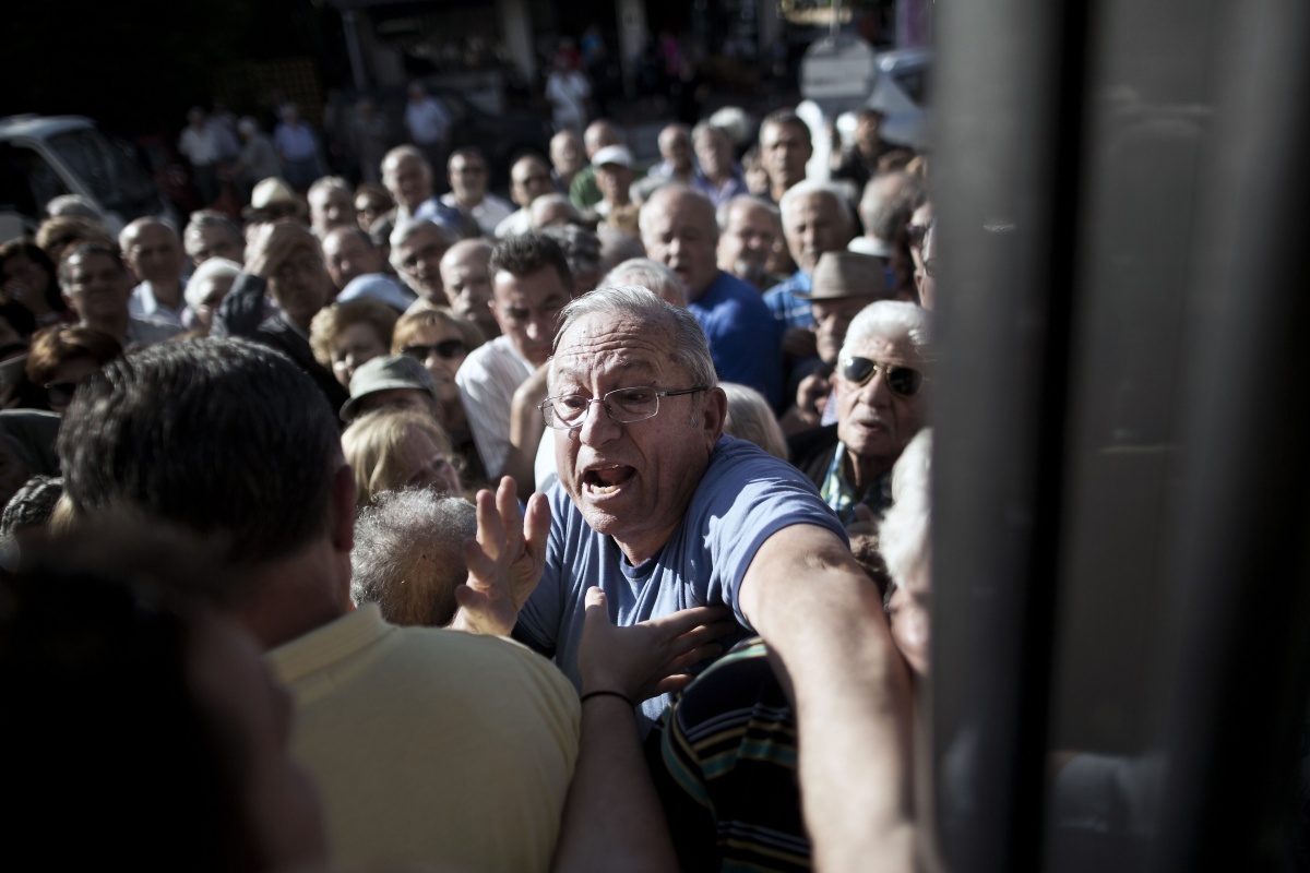 A heartbreaking photograph of an elderly man collapsed on the ground openly crying in despair outside a Greek bank, his savings book and identity card strewn next to him, has captivated people around the world.