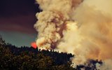 Dramatic images showed cars burning on the road, while the blaze roared in the thick brush along the main artery after nightfall, illuminating the night sky.
