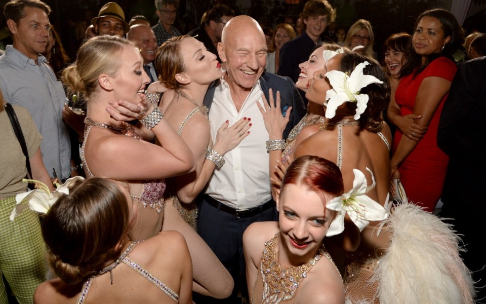 Actor Patrick Stewart is showered with affection as he attends the STARZ' 'Blunt Talk' series premiere in Los Angeles, California.