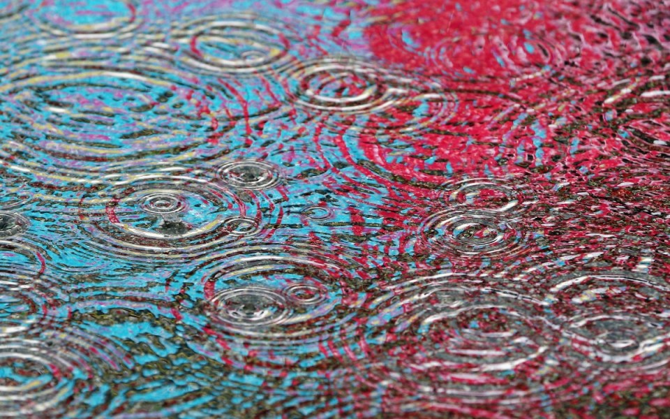 Heavy rain paints a colourful picture on a footpath in Piccadilly Circus in London, England.