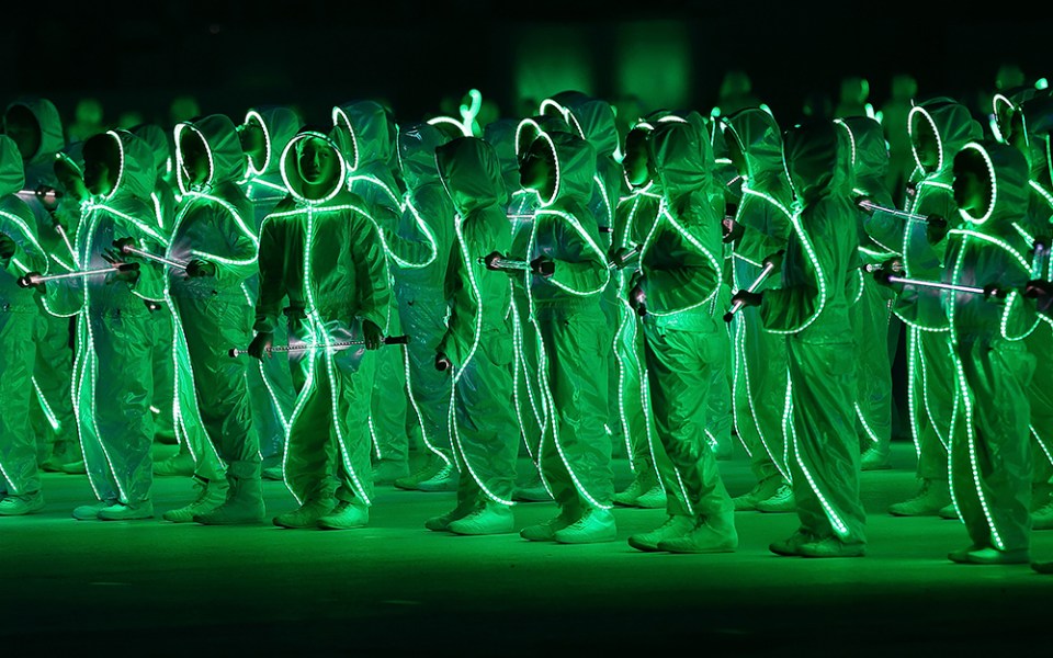 Entertainers perform as part of Singapore's celebration of 50 years of independence.