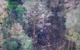 Photos of the suspected site show dense forest, broken by a blackened clearing strewn with debris.
