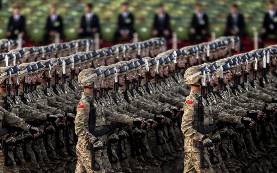 Chinese soldiers march past Tiananmen Square before a military parade to mark the 70th anniversary of the end of the Second World War in Beijing.