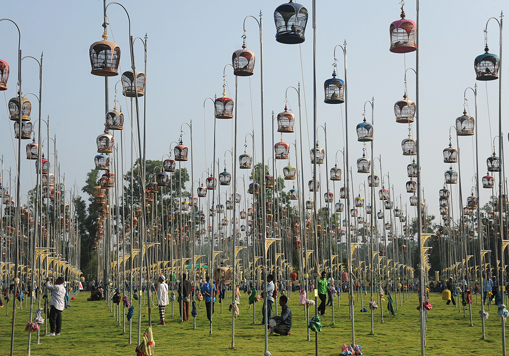 Birds wait for a traditional bird-singing competition to begin in Thailand.