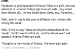 “We’re really sad for what happened in Paris tonight but there is also a city capital named BEIRUT and was attacked yesterday from terrorist (sic) why facebook didn’t activated the safety check in Lebanon Mark Zuckerberg?” Wadih Constantine wrote in a comment.